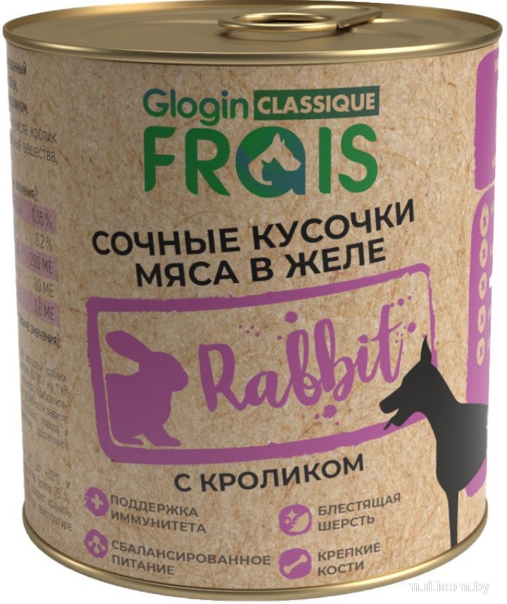 | Информация | - Полнорационный влажный корм премиум класса для собак с нормальной физической активностью. - Качественные ингредиенты насыщают организм и способствуют правильному развитию домашних животных. - Состав обогащен витаминно–минеральным комплексом. - Содержит 80% мясных продуктов, 100% натуральные ингредиенты, без сои, искусственных ароматизаторов и консервантов, без красителей и усилителей вкуса. - Состав: мясо и субпродукты 80% (в том числе кролик минимум 4%), злаки, витамины, минеральные вещества, натуральные желирующие агенты. - Аналитический состав: белок 8.5%, жир 5%, зола 2%, влажность 82%, фосфор 0.2%, кальций 0.35%, клетчатка 0.3%. - Добавки: витамин А 200 МЕ, витамин Д3 20МЕ, витамин Е 3.6 мг. - Условия хранения: при температуре от 0°С до 35°С и относительной влажности воздуха не более 75%. После вскрытия упаковки продукт следует хранить в холодильнике не более 24 часов при температуре от 2°С до 6°С. |