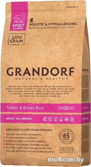 | Ингредиенты | Дегидрированное мясо индейки, Свежее мясо индейки, Цельный бурый рис, Соус из индейки, Жир индейки (консервированный смесью токоферолов), Свежее лососевое масло, Льняное семя, Сушеный цикорий (натуральный источник FOS и инулина), Cушеные пивные дрожжи (натуральный источник MOS), Глюкозамин гидрохлорид (500 мг/кг), Хондроитин сульфат (500 мг/кг), МСМ (Метилсульфонилметан), Cушеное яблоко, Cушеный шпинат, Cушеная брокколи, Cушеная клюква, Cушеная черника, Юкка Шидигера, Смесь растительных экстрактов (Розмарина, Грейпфрута, Апельсина, Куркумы и Сизигиума). Сохранено смешанными токоферолами (источник витамина Е) и розмарином. Произведено без: кукурузы, пшеницы, курицы, куриного жира, яиц, субпродуктов, сои, глютена, ГМО, красителей, искусственных ароматизаторов и консервантов. |