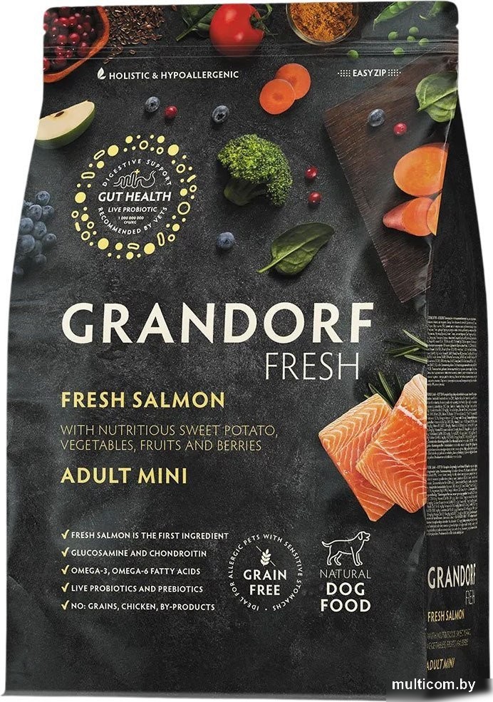 | Информация | Беззерновой корм с живыми пробиотиками для взрослых собак мелких пород, для здоровья кожи и шерсти или склонных к аллергии._x000D_ |