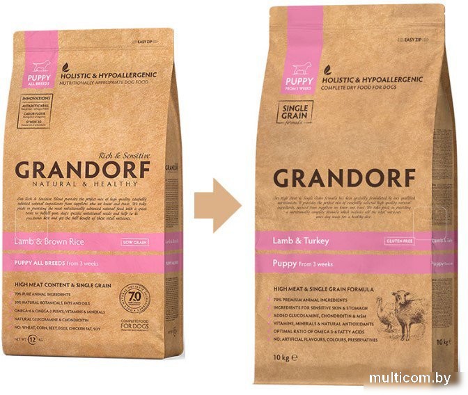 | Информация | - Корм для щенков от 3 недель, беременных и кормящих собак. Идеально подходит для нежной пищеварительной системы щенков. Высокое содержание незаменимых белков, полезных жиров, аминокислот и витаминов гарантирует здоровый рост и развитие щенков. Формула, богатая бараниной и индейкой, ориентирована на чистый животный белок и содержит все незаменимые аминокислоты для удовлетворения биологических потребностей питомца в мясном питании для здорового образа жизни. - 70% мяса и животных ингредиентов. Низкозернистый состав. Гипоаллергенные ингредиенты. 29% белка, 18% жира. - Не содержит: кукурузы, пшеницы, свеклы, гороха, яиц, побочных продуктов, курицы, куриного жира, сои, искусственных ароматизаторов, консервантов и ГМО. - Гипоаллергенные ингредиенты идеально подходят для чувствительных животных, помогают пищеварению и укрепляют иммунную систему. - Состав: Дегидратированное мясо ягненка (24%), Дегидратированное мясо индейки (23%), Цельнозерновой коричневый рис, Свежее мясо ягненка (7%), Свежее мясо индейки (7%), Жир индейки (7%), Порошок корней цикория (натуральный источник) пребиотиков: ФОС и инулин), мука рожкового дерева, сушеное яблоко, масло лосося (1%), сушеный антарктический криль (натуральный источник ЭПК и ДГК, 1%), пивные дрожжи (натуральный источник МОС), глюкозамин (1.000 мг /кг), хондроитинсульфат (1000 мг/кг), МСМ (метилсульфонилметан, 40 мг/кг), сушеная клюква, юкка Мохаве. - Метаболическая энергия: 4270 ккал/кг. - Анализ: протеин — 29.0%, жир — 18.0%, Омега-6 — 3.2%, Омега-3 — 0.7%, зола — 7.5%, клетчатка — 3.0%, влажность — 9.0%, кальций — 1.4%, фосфор — 1.0%. - Микроэлементы: железо (E1) — 90.0 мг/кг, медь (Е4) — 13.0 мг/кг, цинк (E6) — 100.0 мг/кг, марганец (E5) — 40.0 мг/кг, кобальт (E3) — 1.5 мг/кг, йод (E2) — 1.5 мг/кг, селен (E8) — 0.2 мг/кг, глюкозамин — 1.500 мг/кг, хондроитин — 1.000 мг/кг, MSM — 40.0 мг/кг. - Витамины: витамин A 20.000 мг/кг, витамин D3 2.000 мг/кг, витамин E (a-токоферол) 150 мг/кг. - Аминокислоты: таурин 1.000 мг/кг. - Антиоксиданты: комплекс натуральных антиоксидантов (Экстракт Розмарина, Грейпфрута, Апельсина, Куркумы и Сизигиума) 300 мг/кг. |