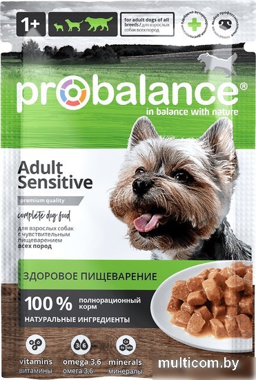 | Информация | Натуральный полнорационный корм для взрослых собак, склонных к аллергии и c чувствительным пищеварением. Рекомендован для ежедневного кормления питомцев всех пород. Собаки с чувствительным пищеварением нуждаются в особом питании. Для таких питомцев команда датских ветеринаров разработала особый корм Probalance "Sensitive" (Пробаланс "Сенситив"). В него входят компоненты с низким индексом аллергенности, которые легко усваиваются и не раздражают желудок. Корм богат животным белком (самый важный компонент в питании собак). В рацион вошло несколько видов мяса, в том числе мясо кролика, которое известно, как гипоаллергенный продукт. Среди компонентов — жирные кислоты Омега-3 и Омега-6. Они снижают воспалительные процессы в организме и улучшают внешний вид кожи и шерсти. Мягкие сочные кусочки в соусе нравятся питомцам и, как правило, съедаются без остатка. Корм Probalance "Sensitive" предельно сбалансирован и покрывает суточную потребность собаки в питательных веществах, минералах и витаминах. Упаковка 100 грамм рассчитана на одно кормление собаки мелкой и средней породы, что облегчает хозяину дозировку корма. |