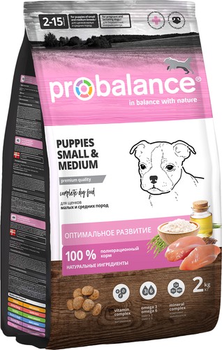 | Информация | Probalance "Immuno Puppies Small & Medium" – натуральный рацион премиум класса, обогащенный витаминами и минералами. Рекомендован для щенков малых и средних пород 2-12 месяцев, а также сук в период беременности и кормления. От правильного питания зависит здоровье, активность и даже темперамент щенка. Корм Probalance "Immuno Puppies Small & Medium" (Пробаланс "Иммуно Паппи Смол энд Медиум") разработали датские практикующие специалисты по кормлению собак. В нем нет ни грамма искусственных компонентов и Е-консервантов. Основа корма – тщательно отобранное натуральное мясо (26%). Это неслучайно: белок является строительным материалом и формирует мышцы растущего питомца. Щенки много играют и двигаются. По сравнению с взрослыми животными их метаболизм протекает гораздо быстрее. Корм Probalance "Immuno Puppies Small & Medium"обладает увеличенной энергетической ценностью (394 ккал на 100 г), что дает озорнику запас энергии на целый день. Здоровое развитие невозможно без витаминов и минералов. Эту потребность решает корм Probalance, в котором присутствуют нужные элементы в оптимальном количестве. Владельцу щенка не надо ломать голову, подбирая витаминные добавки. За крепость иммунитета отвечает лизин (крайне важный элемент, он тоже есть в корме). L-карнитин нужен, чтобы щенок набирал мышечную массу без лишних жировых отложений. Корм Probalance "Immuno Puppies Small & Medium" содержит более 30 полезных элементов. В этом его отличие от дешевых аналогов. Заводчики отмечают, что кормление щенка кормом Probalance помогает вырастить здоровую и активную собаку. |