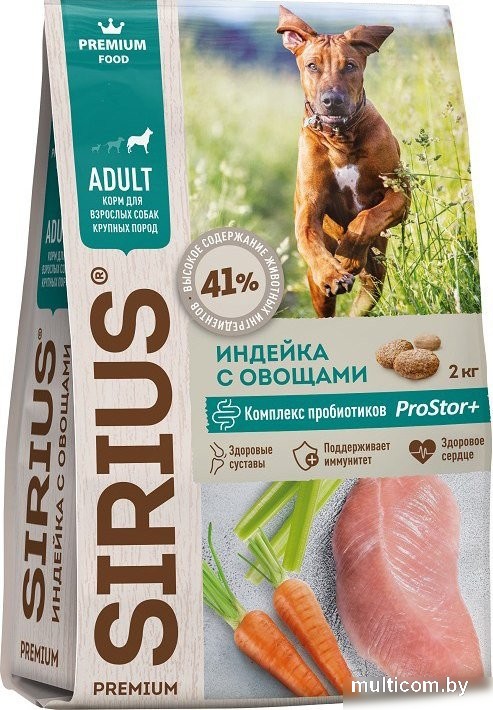 | Информация | Сухой корм премиум класса для полноценного ежедневного рациона взрослых собак крупных пород. Высокое содержание мясных ингредиентов обеспечивает оптимальный уровень белка и укрепляет мышцы. Баланс витаминов и комплекса пробиотиков 4-го поколения Prostor+ нормализует пищеварение и укрепляет иммунитет. Омега 3 и Омега 6 способствуют поддержанию здоровья сердца, мозга, нервной системы, здоровья кожи и красоты шерсти. Корм не содержит пшеницы. Содержит хондропротекторы для укрепления суставов._x000D_ _x000D_ Состав: Дегидрированное мясо (индейка 16%, курица 11%), рис, кукуруза, жир куриный, гидролизованные мясные белки, растительные волокна (источник клетчатки), овсяные хлопья, семена льна, дрожжи, жир лососевый 0,7%, морковь сушеная, тыква сушеная, пробиотический комплекс ProStor+ (Bacillus subtillis, Bacillus licheniformis, автолизат пивных дрожжей, пектиновый комплекс, эхинацея, ромашка), глюкозамина сульфат – 750 мг/кг, сельдерей сушеный, Юкка Шидигера, хондроитина сульфат – 250 мг/кг._x000D_ _x000D_ Корм не содержит искусственных красителей, ароматизаторов, ГМИ._x000D_ _x000D_ Добавки на 1 кг: витамин А – 15 000 МЕ, витамин Д3 – 1200 МЕ, витамин Е – 300 МЕ, витамины группы В (В1, В2, В3, В4, В5, В6, В9, В12) – 1448 мг, биотин – 2мг, железо – 130 мг, цинк – 140 мг, марганец – 19 мг, медь – 13 мг, йод – 2.6 мг, селен – 0,2 мг._x000D_ _x000D_ Энергетическая ценность: 3780 ккал/кг._x000D_ _x000D_ Аналитический состав: сырой протеин – 25%, сырой жир – 14%, сырая клетчатка – 3,5%, сырая зола – 8%, влажность – 9%, кальций –1.5%, фосфор – 0.9%. Сумма омега 6 и 3 жирных кислот – 3,2%. |