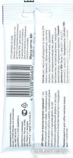 | Информация | Biff DENT жевательные снеки - это профилактическое лакомство для собак, которое благодаря специально разработанной форме и текстуре, учитывает все особенности мелких пород. Рекомендованы для снятия мягкого зубного налета. |