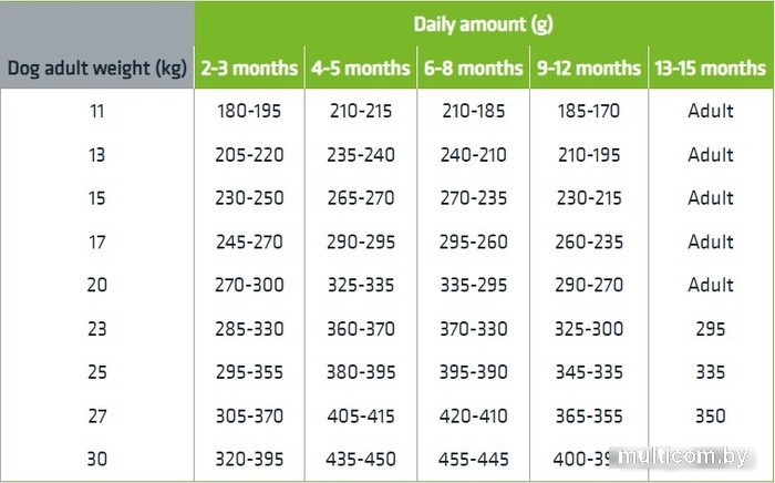 | Возраст | для щенков |