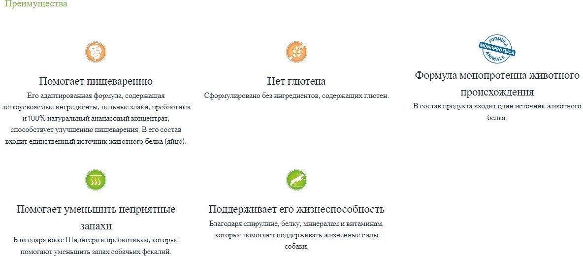 | Информация | - Адаптированная формула корма включает легкоусвояемые ингредиенты, цельные злаки, пребиотики и 100% натуральный ананасовый концентрат, что способствует улучшению пищеварения. В составе присутствует единственный источник животного белка — яйцо. Корм изготовлен без глютена. - Благодаря юкке Шидигера и пребиотикам, корм помогает уменьшить запах собачьих фекалий. Спирулина, белки, минералы и витамины поддерживают жизненные силы вашей собаки. - Состав корма: обезвоженное яйцо 15% (эквивалент свежего яйца 41%), цельная кукуруза 14%, кукурузная мука «фиоретто», кукурузный белок, обезвоженный горох, рисовая крупа, сало, коричневый рис 4%, минеральные вещества, гороховый белок, гидролизованный гороховый белок, рисовый белок, льняное семя, сушеный концентрат корня цикория (источник инулина) 0.8%, сушеный концентрат стеблей ананаса 0.1%, спирулина (Arthrospira Platensis) 0.1%, сушеная юкка шидигера 0.025%. Все ингредиенты натурального происхождения. - Пищевые добавки включают: витамин А 27000 МЕ, витамин D3 1200 МЕ, витамин Е 555 мг и другие важные микроэлементы. - Аналитические ингредиенты: сырой белок 25%, сырой жир 14,5%, сырая клетчатка 3%, сырая зола 7%. - В продаже также доступны ветеринарные препараты для заботы о здоровье вашего питомца. Переходите по ссылке, чтобы ознакомиться с ассортиментом. |
