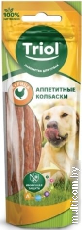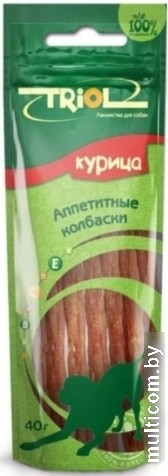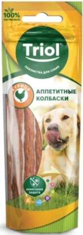 | Информация | Triol PT01 Колбаски из курицы, 40 г - это аппетитное лакомство для собак, обогащенное комплексом из витаминов A, E, D3 и L-карнитина. |