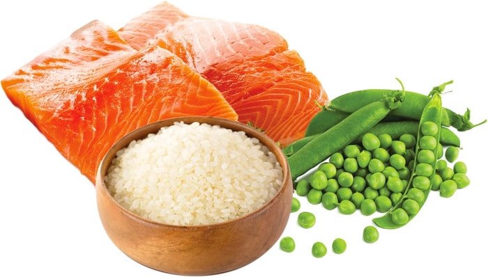 | Ингредиенты | Обезвоженный животный белок (27,6%, из них 14,5% лосось *), рис (14,4%), кукуруза, горох (12%), кукурузная мука, куриный жир, сушеный жом свеклы, животный белок гидролизаты, экспеллер из тыквенных семечек (0,5%), сушеные цветы, ягоды (0,05%), глюкозамин. |
