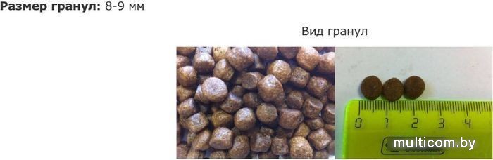 | Питательные вещества | Протеин - 28%, Жир – 16%, Клетчатка – 2,4%, Зола - 6%, Влажность - 9%. |