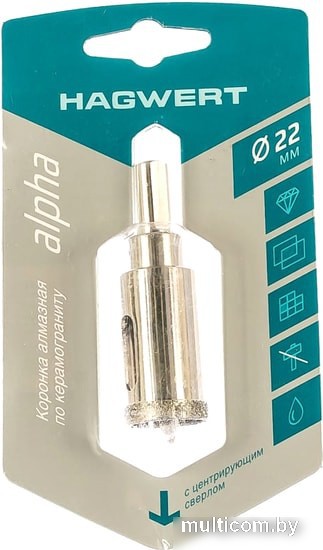 Информация | Коронка алмазная HAGWERT 576222 предназначена для сверления отверстий в керамической плитке любой твердости, керамограните и стекле. |