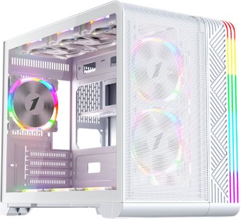| Информация | - 1STPLAYER VT6 – это современный компьютерный корпус с акцентом на высокую вентиляцию и поддержку мощных комплектующих. Его главная особенность – возможность установки до 11 вентиляторов и радиаторов СЖО до 360 мм сбоку и до 240 мм сверху, что обеспечивает эффективное охлаждение даже при сборке производительных систем. - Корпус выполнен из сочетания металла, пластика и закаленного стекла, что придаёт ему стильный внешний вид и прочность. Белый цвет корпуса отлично впишется в любой интерьер, а боковое окно из закаленного стекла позволит любоваться внутренней сборкой. - Фронтальная панель выполнена в виде металлической сетки, что способствует свободному прохождению воздуха и увеличивает продуваемость корпуса. Для удобства обслуживания предусмотрен выдвижной пылевой фильтр снизу, который легко снимается и очищается. - VT6 поддерживает установку материнских плат формата micro-ATX и mini-ITX, видеокарт длиной до 400 мм и процессорных кулеров высотой до 157 мм. На фронтальной панели расположены два порта USB 3.0, один USB 2.0 и комбинированный аудиоразъем, что обеспечивает удобное подключение периферии.  |