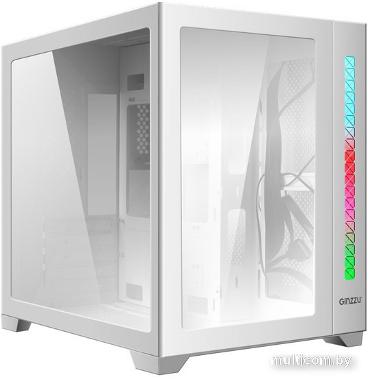 | Информация | ? Прочное шасси из стали белого цвета 0,6 мм. ? Поверхности корпуса выполнены из закаленного стекла. ? Уникальный дизайн в виде стеклянного куба. ? На передней панели RGB подсветка. ?? Оригинальная конструкция кабель менеджмента и расположения БП. |