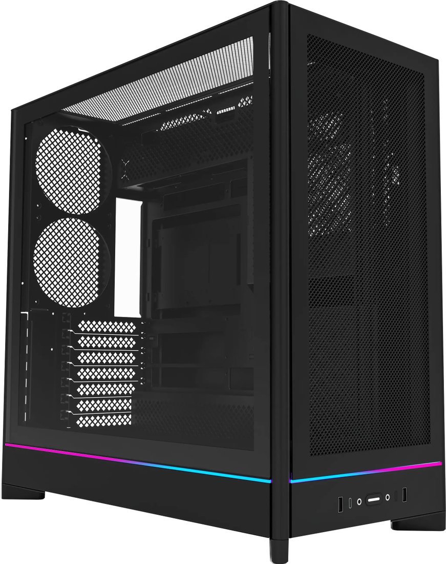 | Информация | - Корпус Montech HS01 разработан для энтузиастов, ценящих производительность и стиль. Благодаря современному дизайну с возможностью реверсивной установки стеклянной боковой панели, вы сможете всегда демонстрировать свою сборку вне зависимости от ее расположения. - Фронтальная панель выполнена из сетки, что обеспечивает отличную продуваемость и эффективный приток воздуха, а яркая полоса ARGB-подсветки в нижней части корпуса добавляет эстетики. Конструкция поддерживает установку стандартных и back-connect материнских плат (MSI Project Zero, ASUS BTF и др.), а также видеокарт длиной до 420 мм и процессорных кулеров до 175 мм. - Для охлаждения предусмотрено до 11 вентиляторов и несколько вариантов установки радиаторов СЖО (до 360 мм сверху), что делает Montech HS01 отличным выбором для мощных игровых и рабочих систем. Сквозная продуваемость усилена двойными задними вентиляторами и продуманной организацией внутреннего пространства. - Функциональность корпуса дополняют современная фронтальная панель с USB Type-C, двумя USB 3.2 Gen1 Type-A, аудиоразъемами и контроллером ARGB-подсветки. Присутствует пылевой фильтр снизу для дополнительной защиты компонентов, а корпус выполнен из сочетания металла, стекла и пластика, что обеспечивает прочность и стильный внешний вид |