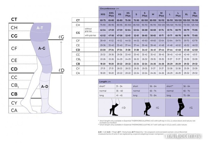 | Информация | Плотные компрессионные гольфы подходят для мужчин и женщин. Гольфы имеют усиленную пятку для повышения износостойкости. Очень легко надеваются и снимаются. Благодаря комбинированию различных высококачественных нитей эти изделия сочетают в себе комфорт и привлекательный внешний вид. Матовая фактура ткани скрывает капилляры и расширенные вены, придавая уверенность в том, что Вы великолепно выглядите. Гольфы с закрытым мыском. Они отлично тянутся, но при этом обеспечивают заявленный компрессионный эффект. Подходят и мужчинам, и женщинам. Удобная мягкая трикотажная резинка отлично удерживает гольфы на месте, но не пережимает ногу. Назначение: Гольфы рекомендуются для предотвращения развития варикозной болезни, для людей, которые работают сидя или стоя (в статическом положении), когда повышается риск застоя крови в ногах и развития венозной недостаточности. Это также отличное профилактическое средство против варикоза для людей, которые любят обувь на высоких каблуках: трикотаж устраняет застой жидкости в ногах и снижает риск развития варикозной болезни. Компрессионные гольфы создают градуированное давление на ногу, что позволяет уменьшить диаметр вен, восстановить работу венозных клапанов и нормализовать венозный кровоток. Устраняют застой жидкости в конечностях (устраняют отеки). Снимают боль и усталость в ногах. Останавливают развитие заболеваний вен. Уменьшают проявления варикоза. Восстанавливают нормальное функционирование венозной системы. Снижают риск образования тромбов. Устраняют отеки и боли в ногах. Показания к применению 1 класс компрессии с закрытым мыском:тяжесть, ощущение усталости в ногах; начальные признаки варикоза при беременности; начальная стадия варикоза с отеком или без него; профилактика тромбоза и эмболии у лежачих пациентов; профилактика тромбоза глубоких вен в путешествиях. Особенности:мягкая трикотажная резинка; подошва укреплена в типичных местах протирания; непрозрачное полотно с высокой эластичностью. Показания к применению 2 класс компрессии с закрытым мыском:сильные отеки ног, которые не проходят до утра; многочисленные расширенные вены длиной более 5 см; варикозные узлы без трофических нарушений; частые ночные судороги в голенях; состояния после склеротерапии и удаления вен; риск тромбоза и острого тромбофлебита (для профилактики заболеваний). Особенности:мягкая трикотажная резинка; подошва укреплена в типичных местах протирания; непрозрачное полотно с высокой эластичностью. Правила ухода: Стирать каждый вечер вручную или в мешке для белья при температуре не выше 40°С с применением мягких моющих средств. Сушить в расправленном виде на горизонтальной поверхности. Сушка в барабане запрещена! Не использовать смягчитель ткани. Не отбеливать и не кипятить. Беречь от воздействия нагревательных приборов, не гладить. Сухая чистка запрещена. Несоблюдение этих рекомендаций может повредить структуру изделия и значительно снизить лечебную эффективность компрессионного трикотажа. Размерная сетка: Снимать мерки лучше всего утром, когда ноги еще не отекли. Если это невозможно, перед измерением на 15-20 минут поднимите ноги выше таза (лягте и положите их на подушку или сядьте и поднимите ноги на стол, спинку стула). Если в соответствии с измерениями вам не подойдет станда