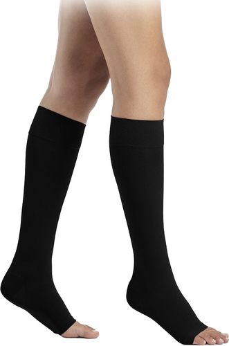 | Информация | Плотные компрессионные гольфы подходят для мужчин и женщин. Гольфы имеют усиленную пятку для повышения износостойкости. Открытый носок делает надевание более удобным и обеспечивает дополнительный воздухообмен. Благодаря комбинированию различных высококачественных нитей эти изделия сочетают в себе комфорт и привлекательный внешний вид. Матовая фактура ткани скрывает капилляры и расширенные вены, придавая уверенность в том, что Вы великолепно выглядите. Гольфы с открытым мыском. Они отлично тянутся, но при этом обеспечивают заявленный компрессионный эффект. Подходят и мужчинам, и женщинам. Удобная мягкая трикотажная резинка отлично удерживает гольфы на месте, но не пережимает ногу. Назначение:гольфы рекомендуются для предотвращения развития варикозной болезни, для людей, которые работают сидя или стоя (в статическом положении), когда повышается риск застоя крови в ногах и развития венозной недостаточности. Отлично подходят для оптимизации результатов оперативного лечения венозных расстройств, поскольку чрезвычайно легко по сравнению с изделиями других производителей надеваются. Обязательно назначаются при повышении риска тромбоза. Компрессионные гольфы создают градуированное давление на ногу, что позволяет уменьшить диаметр вен, восстановить работу венозных клапанов и нормализовать венозный кровоток. Устраняют застой жидкости в конечностях (устраняют отеки). Снимают боль и усталость в ногах. Останавливают развитие заболеваний вен. Уменьшают проявления варикоза. Восстанавливают нормальное функционирование венозной системы. Снижают риск образования тромбов. Устраняют отеки и боли в ногах. Показания к применению:сильные отеки ног, которые не проходят до утра; многочисленные расширенные вены длиной более 5 см; варикозные узлы без трофических нарушений; частые ночные судороги в голенях; состояния после склеротерапии и удаления вен; риск тромбоза и острого тромбофлебита (для профилактики заболеваний). Особенности:мягкая трикотажная резинка; подошва укреплена в типичных местах протирания; непрозрачное полотно с высокой эластичностью. Правила ухода: стирать каждый вечер вручную или в мешке для белья при температуре не выше 40°С с применением мягких моющих средств. Сушить в расправленном виде на горизонтальной поверхности. Сушка в барабане запрещена. Не использовать смягчитель ткани. Не отбеливать и не кипятить. Беречь от воздействия нагревательных приборов, не гладить. Сухая чистка запрещена. Несоблюдение этих рекомендаций может повредить структуру изделия и значительно снизить лечебную эффективность компрессионного трикотажа. Размерная сетка: снимать мерки лучше всего утром, когда ноги еще не отекли. Если это невозможно, перед измерением на 15-20 минут поднимите ноги выше таза (лягте и положите их на подушку или сядьте и поднимите ноги на стол, спинку стула и т. д.). Если в соответствии с измерениями вам не подойдет стандартный компрессионный трикотаж (например, по окружности лодыжки нужен первый размер, а голени — третий), лучше заказать компрессионное изделие по индивидуальным параметрам. |
