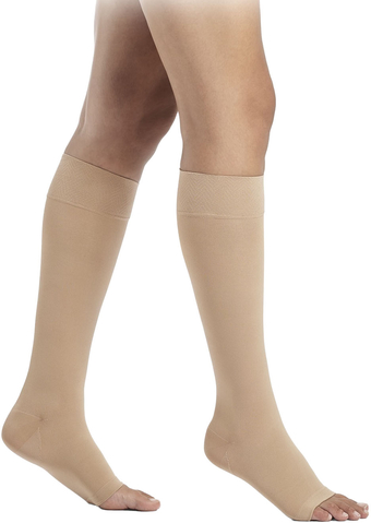 | Информация | Плотные компрессионные гольфы подходят для мужчин и женщин. Гольфы имеют усиленную пятку для повышения износостойкости. Открытый носок делает надевание более удобным и обеспечивает дополнительный воздухообмен. Благодаря комбинированию различных высококачественных нитей эти изделия сочетают в себе комфорт и привлекательный внешний вид. Матовая фактура ткани скрывает капилляры и расширенные вены, придавая уверенность в том, что Вы великолепно выглядите. Гольфы с открытым мыском. Они отлично тянутся, но при этом обеспечивают заявленный компрессионный эффект. Подходят и мужчинам, и женщинам. Удобная мягкая трикотажная резинка отлично удерживает гольфы на месте, но не пережимает ногу. Назначение:гольфы рекомендуются для предотвращения развития варикозной болезни, для людей, которые работают сидя или стоя (в статическом положении), когда повышается риск застоя крови в ногах и развития венозной недостаточности. Отлично подходят для оптимизации результатов оперативного лечения венозных расстройств, поскольку чрезвычайно легко по сравнению с изделиями других производителей надеваются. Обязательно назначаются при повышении риска тромбоза. Компрессионные гольфы создают градуированное давление на ногу, что позволяет уменьшить диаметр вен, восстановить работу венозных клапанов и нормализовать венозный кровоток. Устраняют застой жидкости в конечностях (устраняют отеки). Снимают боль и усталость в ногах. Останавливают развитие заболеваний вен. Уменьшают проявления варикоза. Восстанавливают нормальное функционирование венозной системы. Снижают риск образования тромбов. Устраняют отеки и боли в ногах. Показания к применению:сильные отеки ног, которые не проходят до утра; многочисленные расширенные вены длиной более 5 см; варикозные узлы без трофических нарушений; частые ночные судороги в голенях; состояния после склеротерапии и удаления вен; риск тромбоза и острого тромбофлебита (для профилактики заболеваний). Особенности:мягкая трикотажная резинка; подошва укреплена в типичных местах протирания; непрозрачное полотно с высокой эластичностью. Правила ухода: стирать каждый вечер вручную или в мешке для белья при температуре не выше 40°С с применением мягких моющих средств. Сушить в расправленном виде на горизонтальной поверхности. Сушка в барабане запрещена. Не использовать смягчитель ткани. Не отбеливать и не кипятить. Беречь от воздействия нагревательных приборов, не гладить. Сухая чистка запрещена. Несоблюдение этих рекомендаций может повредить структуру изделия и значительно снизить лечебную эффективность компрессионного трикотажа. Размерная сетка: снимать мерки лучше всего утром, когда ноги еще не отекли. Если это невозможно, перед измерением на 15-20 минут поднимите ноги выше таза (лягте и положите их на подушку или сядьте и поднимите ноги на стол, спинку стула и т. д.). Если в соответствии с измерениями вам не подойдет стандартный компрессионный трикотаж (например, по окружности лодыжки нужен первый размер, а голени — третий), лучше заказать компрессионное изделие по индивидуальным параметрам. |