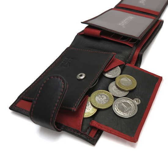 | Информация | Кошелек небольшого размера, застегивается на кнопку, легко поместится в карман брюк или куртки. При этом кошелек очень вместительный. Внутри находится: 9 слотов для карт, 2 кармана для купюр, место для монет, 2 прозрачных кармана для документов. Секция карты закрывается на защелку. ДОПОЛНИТЕЛЬНЫЕ КАРМАНЫ 1 карман-"хранение" для личных вещей |