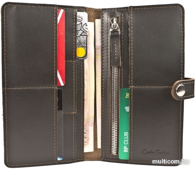 | Информация | Кожаное портмоне Forno (Форно) выполнено из натуральной кожи черного цвета. Внутри два отделения для купюр, 7 карманов для карт и карман на молнии для мелочи. Закрывается на кнопку. |