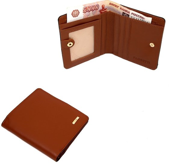| Информация | Компактный женский кошелек FABRETTI коричневого цвета выполнен из натуральной гладкой кожи. Аксессуар закрывается на кнопку, имеет 3 отделения для купюр, одно из которых – на молнии; 6 карманов для дисконтных и банковских карт, 1 карман с прозрачной пластиковой вставкой. Карман для монет расположен на тыльной стороне, закрывается на кнопку. Фурнитура под золото. |