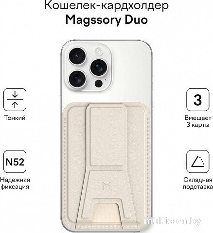 | Информация | Складная конструкция с функцией подставки Тонкий, компактный и легкий Вмещает до 3-х пластиковых карт Надежное магнитное крепление класса N52 Совместимость с MagSafe Оригинальные цвета, подчеркивающие ваш стиль |