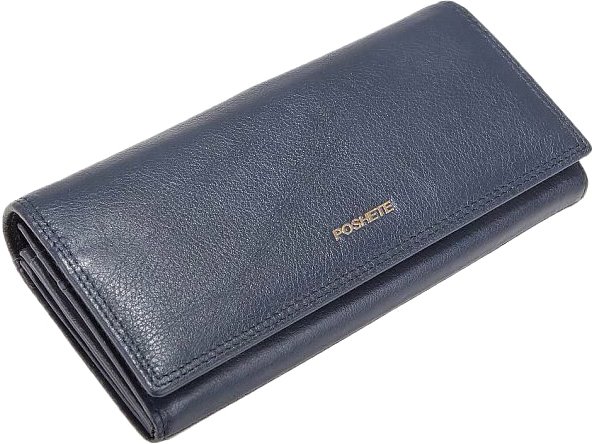 | Информация | Классический женский кошелёк от Poshete выполнен в синем цвете из натуральной кожи с текстильной подкладкой. Кошелёк большой, купюры не придётся складывать. Закрывается клапаном на скрытые магниты. Внутри три отделения для купюр, карман на молнии, кармашки для пластиковых карт и отделение на замке-поцелуйчике для монет. |