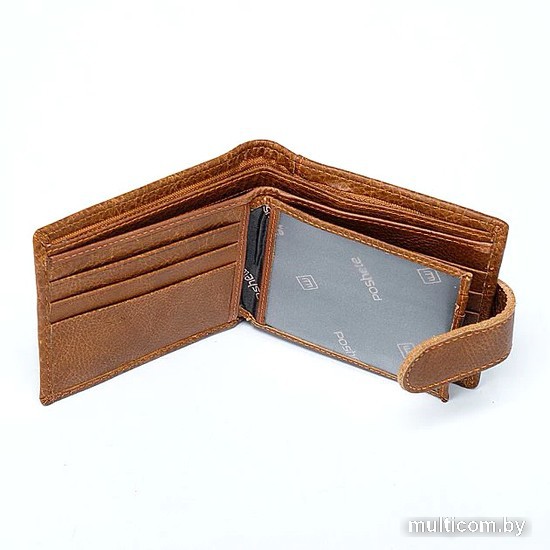 | Информация | Мужской кошелёк Poshete карамельного цвета, выполнен из натуральной кожи с текстильной подкладкой. Внутри отделения для купюр и пластиковых карт, карман-окошко и карман на молнии. Снаружи карман на молнии для монет. Кошелёк компактный, удобный в использовании, складывается пополам и закрывается на кнопку. |
