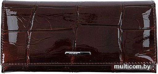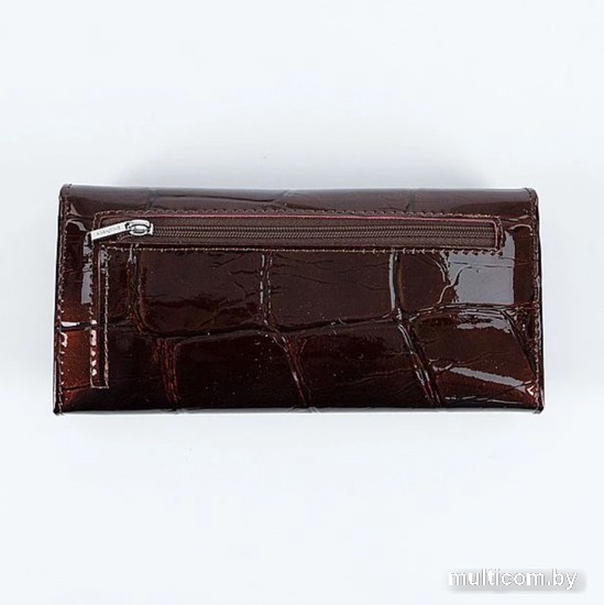 | Информация | ? Полноразмерное портмоне из натуральной лакированной кожи с крупным тиснением под крокодиловую кожу. ? Модель в коричневом цвете, закрывается клапаном на скрытом магните. ? Внутри: отделение с застежкой-молнией с перегородкой, карманы для карт, отделения для купюр, карман на молнии. ? Снаружи на задней стороне — карман на молнии. |