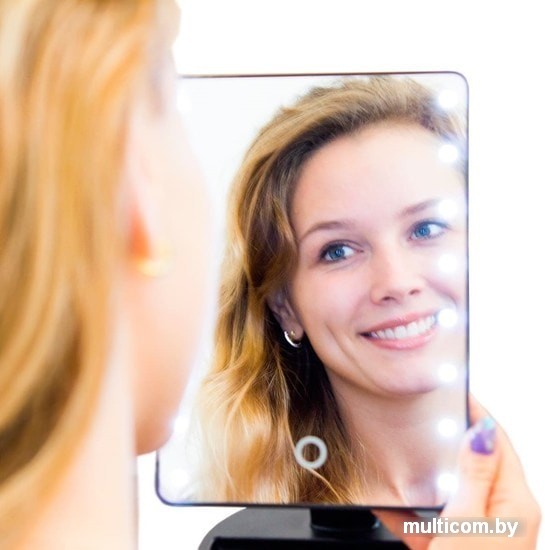 | Информация | 16 LED ламп.Удобная подставка легко поворачивается на 180 градусов, позволяя установить необходимый ракурс.Сенсорная кнопка регулирования яркости подсветки на зеркальной панели. |