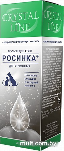 | Информация | Росинка лосьон глаз — гигиеническое средство для обработки глаз у животного. Применяют для гигиенической обработки глаз собакам и кошкам, кроликам, хорькам и декоративным грызунам при наличии утренних засыхающих выделений, слезоточивости и отеках век, для профилактики образования слезных дорожек, а также для гигиенической обработки глаз перед применением лекарственных препаратов. |