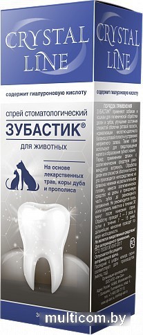 | Информация | Зубастик Спрей — зоогигиенический стоматологический спрей. Зубастик Спрей применяют для гигиенической обработки ротовой полости, снижения болевого синдрома и улучшения состояния слизистой, устранения неприятного запаха и воспалений при заболеваниях ротовой полости, в том числе стоматитах, альвеолитах, пародонтозах, пародонтитах, заболеваниях десен и для профилактики возникновения зубного камня у кошек и собак. |