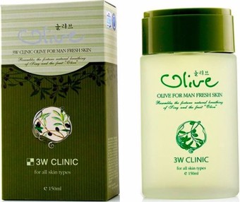 Информация | 3W CLINIC OLIVE FOR MAN FRESH SKIN (150ml) - тонер для лица для мужчин c экстрактом оливы (повышает тонус кожи, увлажняет, защищает от негативного воздействия окружающей среды). Тоник с экстрактом оливы обеспечивает долговременную защиту кожи от неблагоприятного воздействия окружающей среды, а также механических воздействий (бритье). Экстракт оливы способствует глубокому питанию и увлажнению кожи, смягчает ее и повышает эластичность, защищает от возникновения шелушений и раздражений, предупреждает преждевременное появление морщин. Улучшает текстуру кожи, восстанавливает ее увлажненность и успокаивает раздражение. Смягчает участки, подверженные частому бритью, и ускоряет их заживление. Оказывает укрепляющее действие, повышает эластичность кожи и улучшает защитный барьер. Способ применение: после очищения кожи нанести достаточное количество тоника на лицо и шею. |