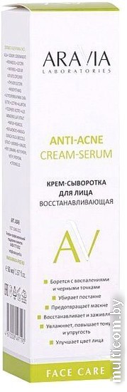 | Информация | Крем-сыворотка предназначена для интенсивного восстановления жирной и проблемной кожи. Комплекс активных компонентов уменьшает воспаления, успокаивает, снимает раздражения и шелушения, выравнивает рельеф и способствует заживлению. Защищает кожу от токсинов и воздействия окружающей среды. Нормализует выработку себума, улучшает цвет лица и помогает коже дышать. Борется с пигментными пятнами и следами постакне. Увлажняет, сокращает морщины, повышает тонус и упругость кожи. Назначение: восстановление кожи. Рекомендации по использованию: подходит для ежедневного использования. Объем: 50 мл |