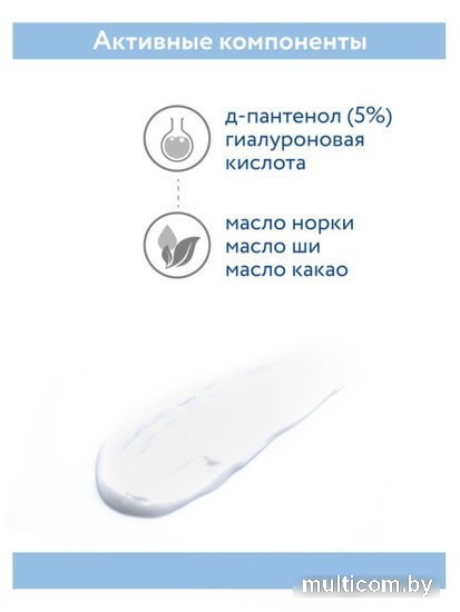 | Активные ингредиенты | масло какао; пантенол; масло ши; гиалуроновая кислота |