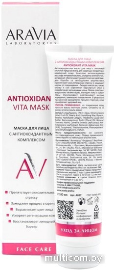 | Информация | Маска для лица с омолаживающим и лифтинг-эффектом. Осветляет возрастную пигментацию, матирует и сужает поры. Разглаживает мелкие морщинки. Используйте маску, чтобы замедлить возрастные изменения и улучшить внешний вид кожи. — Альфа-липоевая кислота, экстракт зеленого чая и витамин Е оказывают мощный антиоксидантный эффект. Предотвращают преждевременное старение. — Липиды масел ши, какао, оливы и сои укрепляют барьерный слой кожи и способствуют её регенерации. |