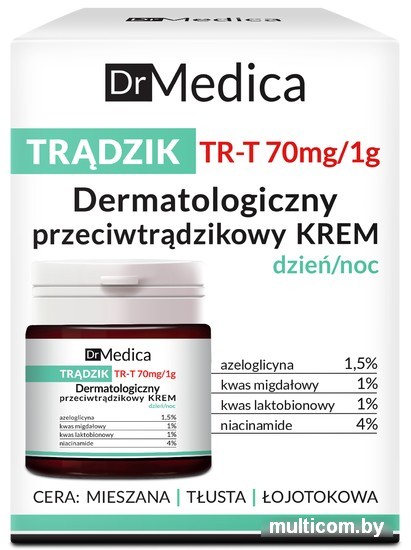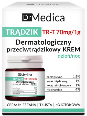 | Информация | Эксперты польской компании Bielenda разработали инновационное средство, активные компоненты которого целенаправленно действуют на акнеподобные изменения. Дерматологический крем способствует нормализации работы сальных желез, глубоко очищает поры и сужает их, значительно уменьшает жирный блеск, создает эффект матовости. Кроме того, он оказывает увлажняющее действие, осветляет пигментацию.Формула дерматологического антиакне-крема содержит азелаиновую кислоту, которая препятствует размножению болезнетворных бактерий, провоцирующих возникновение акне. Входящая в состав миндальная кислота оказывает антибактериальное действие, а лактобионовая кислота отшелушивает ороговевшие клетки, стимулирует регенерацию. Кислоты осветляют пигментацию, а витамин B3 укрепляет защитные функции кожи. |