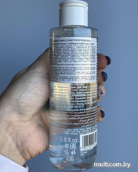 | Информация | ? Тоник с активной формулой гиалуроновой кислоты, витамина В5 и молочной кислоты ? Интенсивное увлажнение и освежение кожи ? Деликатное отшелушивание ороговевших клеток ? Разглаживание морщин и выравнивание цвета кожи ? Подготавливает кожу к нанесению крема или сыворотки ?? Подходит для всех типов кожи, особенно для обезвоженной |
