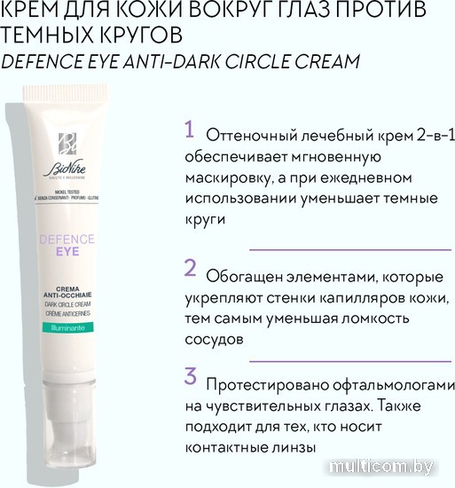 | Информация | Осветляет область вокруг глаз и уменьшает темные области и признаки усталости. Обогащен троксерутином, биофлавоноидом, который помогает укрепить стенки капилляров, тем самым уменьшая их ломкость. Благодаря особым микрожемчужинам придает более отдохнувший вид. Протестировано офтальмологами на чувствительных глазах. Также подходит для тех, кто носит контактные линзы. |