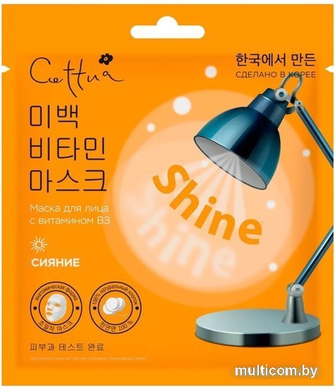| Информация | Главный супер–ингредиент маски — витамин В3. Он выравнивает цвет кожи, помогает бороться с мелкими морщинками и тусклостью. Витамин В3 способствует увеличению синтеза коллагена, укрепляет и успокаивает кожу. Результат – глубоко увлажненная, отдохнувшая и сияющая кожа! Тканевая основа маски из 100% хлопка представляет собой мягкое полотно, которое идеально прилегает к коже. |