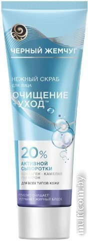 | Информация | Скраб для лица Черный Жемчуг для нормальной и комбинированной кожи деликатно, но эффективно очищает поры, а также придает коже лица гладкость и мягкость. Скраб имеет мягкие отшелушивающие гранулы, которые глубоко очищают поры не травмируя кожу. Благодаря формуле с 20% активной сыворотки с жидким коллагеном, камелией и гиалуроном скраб не только очищает и выравнивает кожу, но и увлажняет, питает и повышает её упругость уже на этапе очищения. В результате уход за кожей становится эффективнее! Скраб для лица – это важный этап очищения кожи, который необходимо повторять не чаще 1 раза в неделю. |