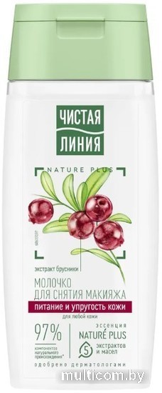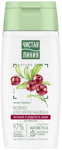 | Информация | Эксперты бренда Чистая Линия разработали молочко для снятия макияжа, которое подходит для всех типов кожи, и действует сразу в нескольких направлениях: деликатно снимает макияж, препятствует потере упругости, увлажняет и питает кожу. В составе продукта 97% компонентов натурального происхождения! Эссенция NATURE PLUS – это пять экстрактов и масел для ухода за кожей. Экстракт вербены восстанавливает баланс увлажненности и тонизирует. Экстракт пиона и льняное масло успокаивают и смягчают. Масло миндаля содержит жирные кислоты, витамины Е и F, питает и выравнивает поверхность кожи. Ферментированное оливковое масло питает и защищает от преждевременного старения. Экстракт брусники препятствует потере упругости кожи. |