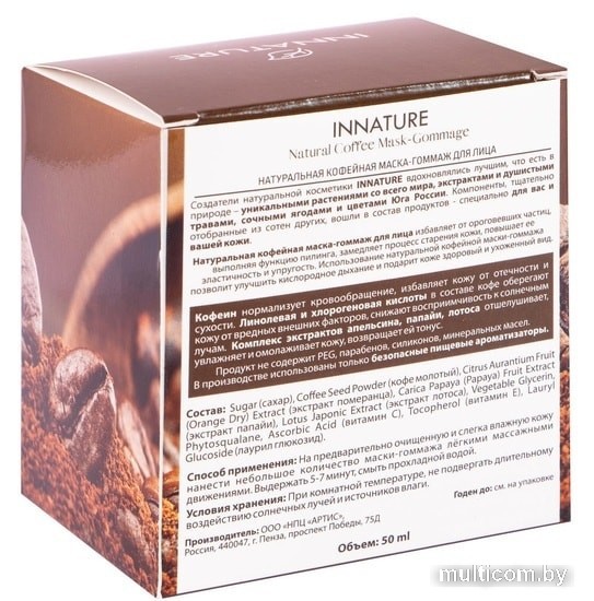 | Состав | Sugar, Coffee Seed Powder, Citrus Aurantium Fruit Extract , Carica Papaya Fruit Extract, Lotus Japonic Extract, Vegetable Glycerin, Phytosqualane, Ascorbic Аcid, Tocopherol, Lauryl Glucoside |