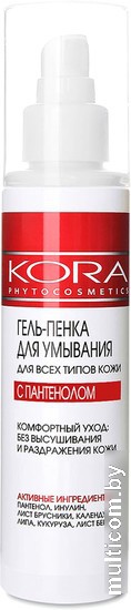 | Информация | Гель-пенка для умывания с пантенолом от KORA имеет приятную легкую текстуру и нежный аромат. Она создана для деликатного очищения кожи лица и шеи и для снятия декоративной косметики. |