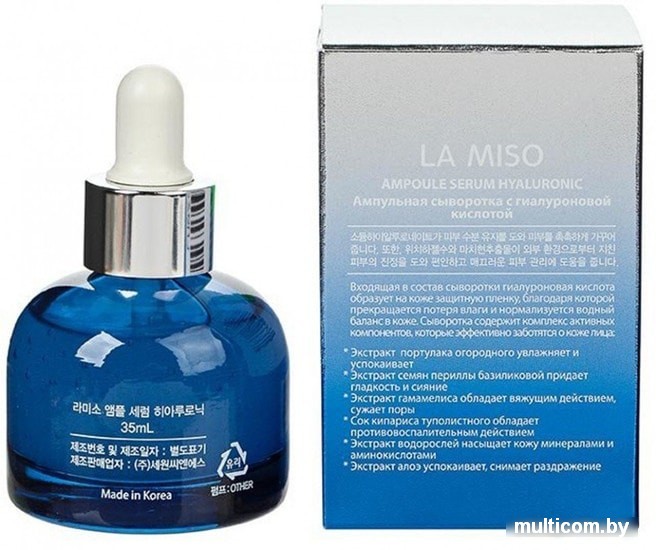 | Информация | Входящая в состав сыворотки гиалуроновая кислота образует на коже защитную пленку, благодаря которой прекращается потеря влаги и нормализуется водный баланс в коже. Сыворотка содержит комплекс активных компонентов, которые эффективно заботятся о коже лица. Экстракт портулака огородного увлажняет и успокаивает. Экстракт семян периллы базиликовой придает гладкость и сияние. Экстракт гамамелиса обладает вяжущим действием, сужает поры. Сок кипариса туполистного обладает противовоспалительным действием. Экстракт водорослей насыщает кожу минералами и аминокислотами. Экстракт алоэ успокаивает, снимает раздражение. |