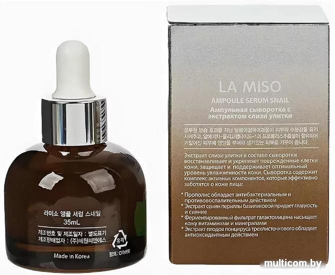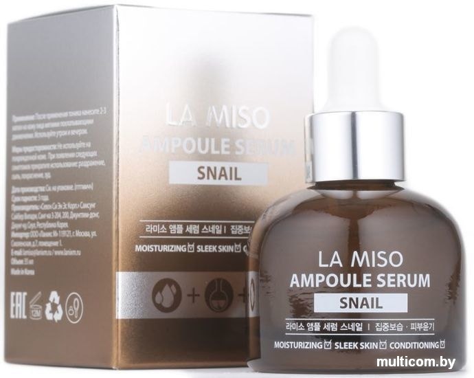 | Информация | Об уникальных свойствах слизи улитки узнали с древних времен. В странах Азии данное средство применяют для заживления ран и ускорения регенерации тканей после ожогов. Дерматологи утверждают, что целебные свойства улиточной слизи связанны с составом: коллаген, аллантоин, эластин, гликолевая кислота, гиалурон и пептиды. Сыворотка не только оздоравливает кожу, но и питает её, увлажняет, тонизирует. Сужает расширенные поры и регулирует выработку кожного жира. Также сыворотка оказывает осветляющее действие. Регулярное применение улиточных средств делает кожу чистой, гладкой, упругой, подтянутой и сияющей. С появлением уникальной восстанавливающей сыворотки La Miso Ampoule Serum Snail проблемы с кожными несовершенствами потеряли свою актуальность. Препарат абсолютно безопасен для здоровья и не только устраняет признаки увядания кожи, но и ликвидирует причины преждевременного старения эпидермиса. |
