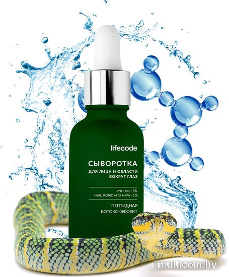 | Информация | Верните вашей коже свежесть и молодость без болезненных инъекций с новой сывороткой с пептидами от «LifeCode». В основе рецептуры сыворотки — синергия инновационных компонентов для активной борьбы с возрастными изменениями кожи: низкомолекулярная гиалуроновая кислота, комплекс натуральных полисахаридов и трипептид SYN-AKE, схожий по своему действию со свойствами полипептида, получаемого из яда храмовой гадюки. Синтетический миорелаксант SYN-AKE позволяет моментально достичь эффекта гладкой и подтянутой кожи, аналогичного результату салонной процедуры введения ботокса. Благодаря содержанию в составе средства современного увлажняющего компонента — гиалуроната натрия, сыворотка глубоко насыщает кожу влагой, помогая на продолжительное время сохранить ее молодость, свежесть, упругость и тонус. Избегайте попадания в глаза. Не наносите на повреждённую кожу. В случае появления аллергических реакций прекратите применение. Сыворотка обладает легкой текстурой, быстро впитывается, не оставляя ощущения липкости и стянутости кожи. |