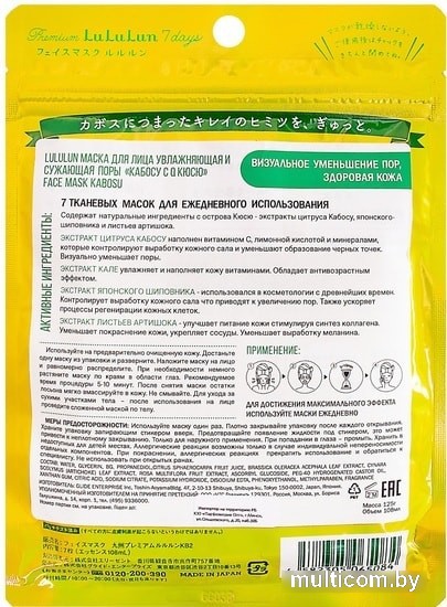 | Информация | Набор японских тканевых масок для жирной и комбинированной кожи с натуральными ингредиентами острова Кюсю - цитрусом кабосу, японским шиповником и экстрактом листьев артишока.Экстракт цитруса кабосу богат витамином С, лимонной кислотой и минералами, которые контролируют выработку кожного сала и уменьшают образование черных точек.Экстракт капусты кале увлажняет, наполняет кожу витаминами, обладает антивозрастным эффектом.Экстракт японского шиповника контролирует выработку кожного сала, ускоряет процессы регенерации кожных клеток.Экстракт листьев артишока - улучшает питание кожи стимулируя синтез коллагена. Уменьшает покраснение кожи, укрепляет сосуды. Уменьшает выработку меланина. |