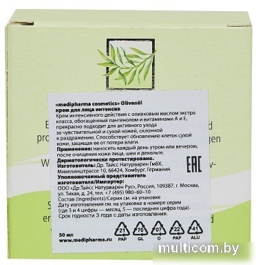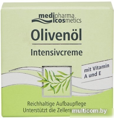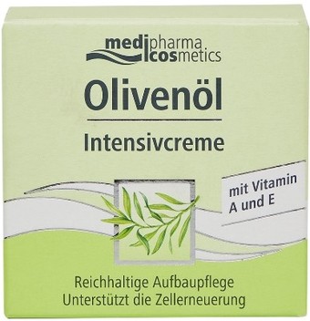 | Информация | Medipharma сosmetics Olivenоl крем для лица интенсив (ранее DOliva крем интенсив для лица) за счет оливкового масла экстра-класса, масла жожоба и ши, а также высокого содержания липидов интенсивно питает и увлажняет кожу, защищает ее от воздействия агрессивных факторов внешней среды, снимает раздражения и покраснения, а также запускает регенерирующие процессы в клетках кожи. |