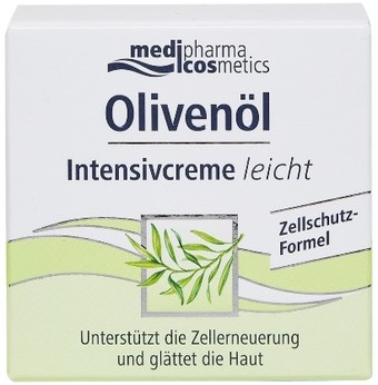 | Информация | Medipharma сosmetics Olivenоl крем для лица интенсив легкий (ранее DOliva крем для лица интенсив LIGHT) разглаживает кожу и способствует обновлению клеток благодаря активным компонентам, входящим в состав. Приятная легкая текстура крема, на основе оливкового масла экстра-класса и ретинола, равномерно наносится и быстро впитывается, сохраняя молодость и упругость кожи. |