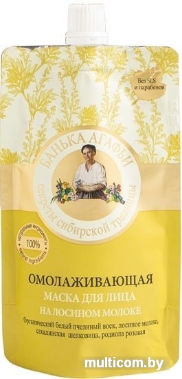 | Информация | Нежная маска для лица на питательном лосином молоке в сочетании с сибирскими травами специально создана для омоложения кожи. Щедро увлажняет, стимулирует обновление клеток, повышает эластичность кожи и выравнивает цвет лица.Лосиное молоко в 4 раза питательнее коровьего молока, обладает мощным омолаживающим действием.Родиола розовая богата органическими кислотами и флавоноидами, благодаря чему возвращает коже упругость и эластичность.Сахалинская шелковица содержит каротин, витамины группы В, которые разглаживают и успокаивают кожу.Органический белый пчелиный воск надежно защищает кожу от обезвоживания.Содержит 100% натуральные ингредиенты |