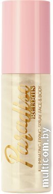 | Информация | Сияющий спрей-фиксатор для лица и тела создаёт роскошный эффект мерцания, делая эффектный сияющий акцент на коже. Может быть использован как основа под макияж, в качестве иллюминайзера на открытые участки тела или для закрепления макияжа и придания сияющего финиша. Специальная формула спрея-фиксатора позволяет перламутровым частицам фиксироваться на коже не отпечатываясь. |